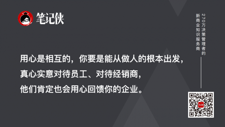听完那个故事,再结合曹老说的话,我最大的感悟就是:用心是相互的。你要是能从做人的根本出发,真心实意对待员工、对待经销商,他们肯定也会用心回馈你的企业。这一个道理,还是后来我回去跟儿子交流的时候,才慢慢捋清楚的,也算是我自己的一点小感悟。