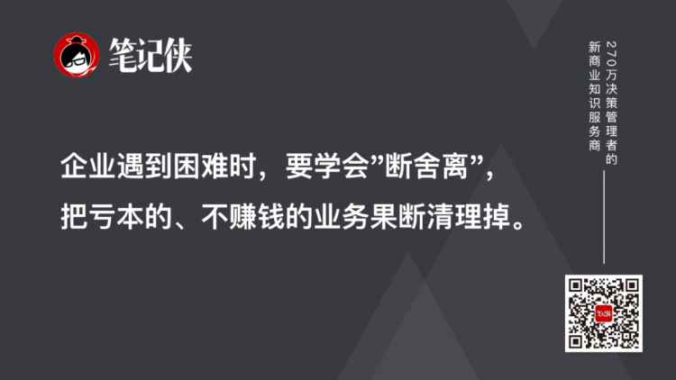 但是,像白酒等行业,现在明显产能过剩,流动性也过剩,你再往里砸钱就是自找麻烦。企业遇到困难时,要学会断舍离——把亏本的、不赚钱的业务果断清理掉。
